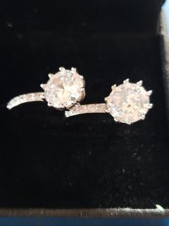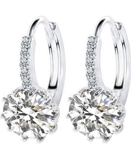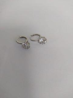 Lot #8203: Unused Zhiwen Eardrop Copper Square Diamond Jewelry Hoop Earrings, White Crystal Cubic Zirconia, 925 Sterling Silver, Each Earring Size 0.9 cm (Office)