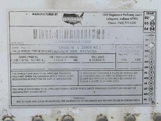- 0678: 2004 Wabash 53ft T/A Van Trailer c/w Air Ride Susp., Sliding Susp., Thermo King Reefer Showing 45,037 Hours, VIN 1JJV532WX4L868626