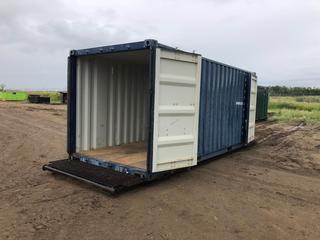 - 1012: 20 Ft. Skid Mtd. Double Door Storage Container c/w 25 Ft. X 8 Ft. Skid. SN DDDU3440129