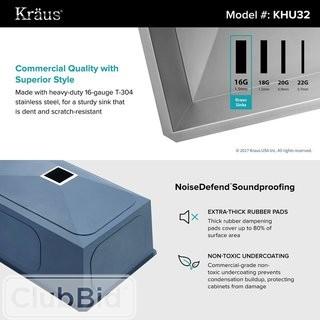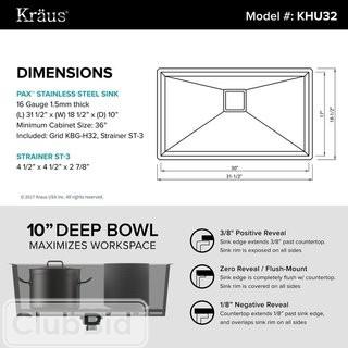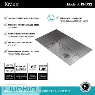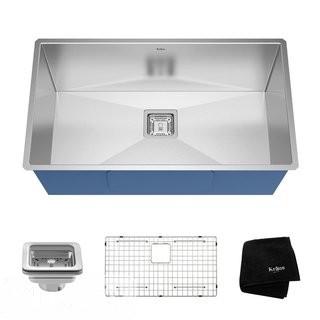 Lot #1525: Kraus Pax Zero-Radius 31.5" x 18.5" 16 Gauge Handmade Undermount Single Bowl Stainless Steel Kitchen Sink (KUS3023)