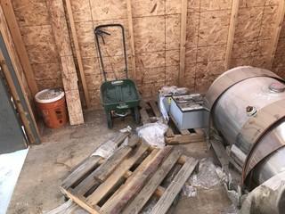 Lot #3907:     10' X10' Shed w/ Contents Including Weed Eater, Saddle Tanks, Batteries, etc.