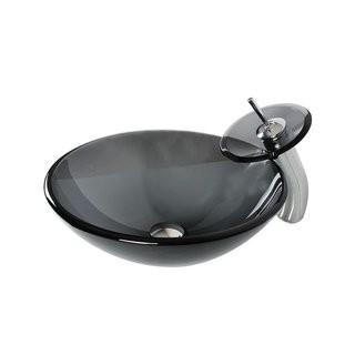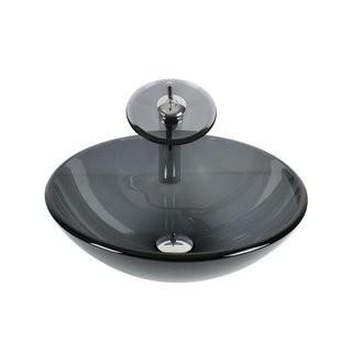 Lot #6169: Arsumo Glass Circular Vessel Bathroom Sink with Faucet (RSMO1009)