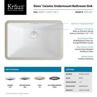 Lot #5449: Kraus Elavo Ceramic Rectangular Undermount Bathroom Sink with Overflow (KUS3030) - White