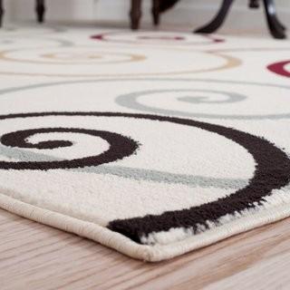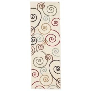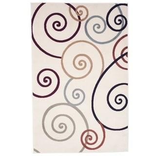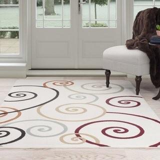 Lot #5942: Lavish Home Modern Swirls Ivory Area Rug (CFB1132_15189387) - 1'8" x 7'