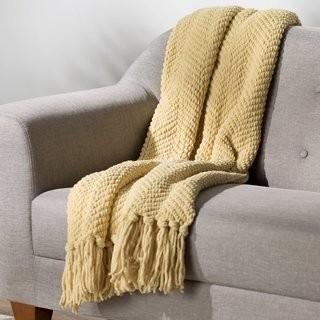 Lot #5237: Three Posts Nader Tweed Knitted Throw Blanket (TRPT1913_23236927) - Yellow