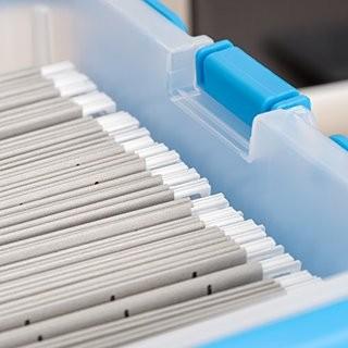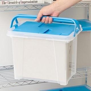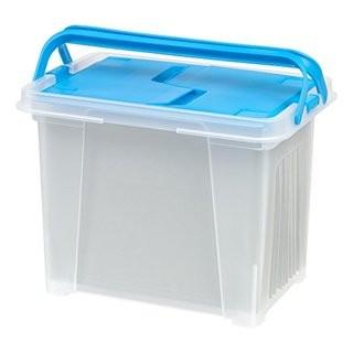 Lot #0507: IRIS Letter Size Portable Wing Lid File Box with Handles, Blue