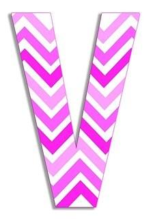 Lot #0605: The Kids Room by Stupell Tri-Pink Chevron Hanging Wall Initial, V, 18"