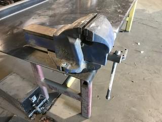 Lot #4462: 120" x 38" Shop Work Bench w/ 6" Bench Vise and Overhead Work Light