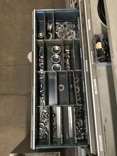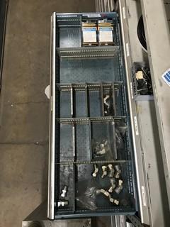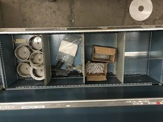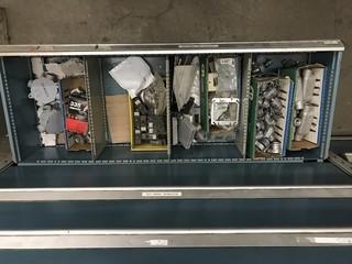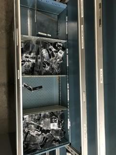 Lot #4811: Contents of Shelving and Built -In Multi-Drawer Parts Cabinets Including Asst. Nuts, Bolts, Breakers, Gang Boxes, Junction Boxes, Fittings, etc.
