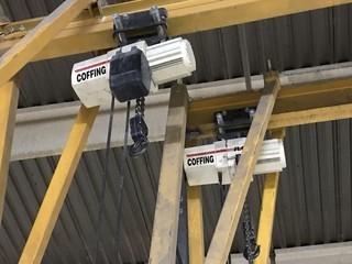 Lot #4485: Mobile A-Frame 2-TON Hoist w/ Coffing 2-TON Electric Chain Hoist and Beam Roller