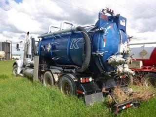 Lot #0039: 2006 KENWORTH T800B T/A Vacuum Tanker, 480,087 Km, 30,729 Hrs, c/w CAT C13 (380 HP), 13 Spd, 16,000 Lb Front, 46,000 Rear Axles, A/R Susp, 245" Wheelbase, Differential Locks, 2005 ALMAC 13,027 Liter Vacuum Tank SN S06907 c/w HIBON 820 Blower c/w Hyd Drive, Hyd Gate, Heated 4" & 16" Discharge Valves, Cyclone & Silencer, 385/65R22.5 Front, 11R22.5 Rear Tires (PARTS).
