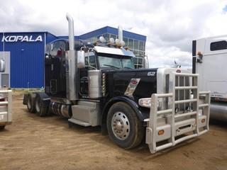 Lot #0065: 2012 PETERBILT 389 T/A Highway Tractor, 1,154,691 Km, c/w Cummins ISX-15 (525 HP), 18 Spd, 12,000 Lb Front, 40,000 Lb Rear Axles, A/R Susp, 244" Wheelbase, Differential & Inter-Axle Lockups, WEBASTO Engine Heater, Wet Kit & GARDNER DENVER Hydrapak Oil Cooler, 60" High Rise Sleeper, Air Slide Fifth Wheel, 11R24.5 Tires.
