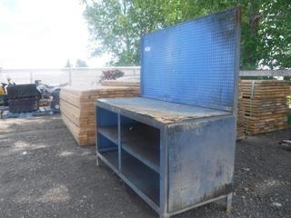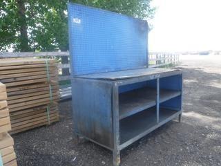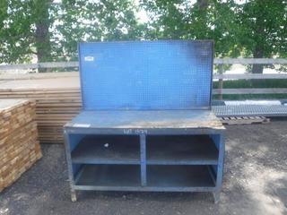 Lot #1579: 5' x 26" x 33" Metal Frame Work Bench w/ Wood Top & Peg Board