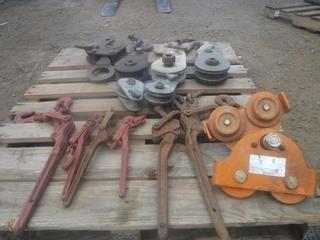 Lot #1730: Pallet of Assorted Crane Hooks, Trolly, and Boomers