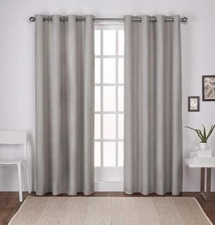Lot #5636: Exclusive Home London Textured Linen Thermal Window Curtain Panel Pair with Grommet Top 54x108 Beige 2 Piece)