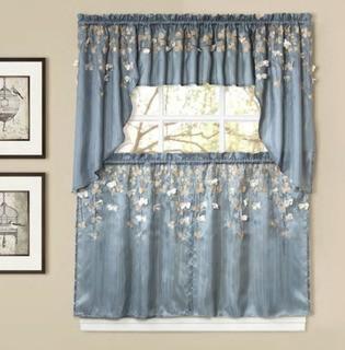 Lot #5926: Lush Decor 2-piece Flower Drops Blue Kitchen Swags - Blue - 4 pcs
