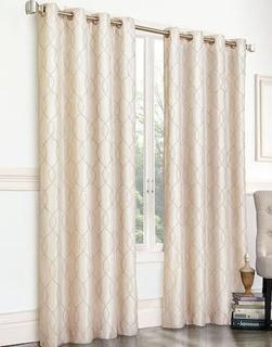 Lot #5048: Regent Court Gramercy Embroidered Faux-Silk Window Curtain - 50" x 95" - Beige