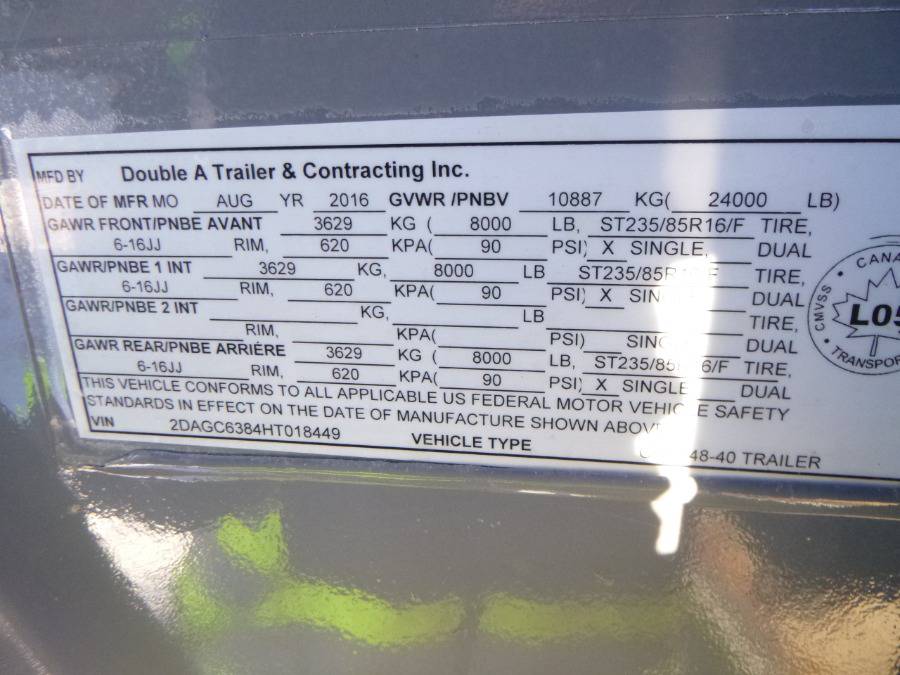 2007 Trailtech 24 Ft. T/A Dually Equipment Trailer c/w Pintle Hitch, 4 Ft. Flip Over Ramp, 235/85R16 Tires, Spring Susp, CVIP 04/2020, VIN 2CU4BARL172021088 (E. Fence)