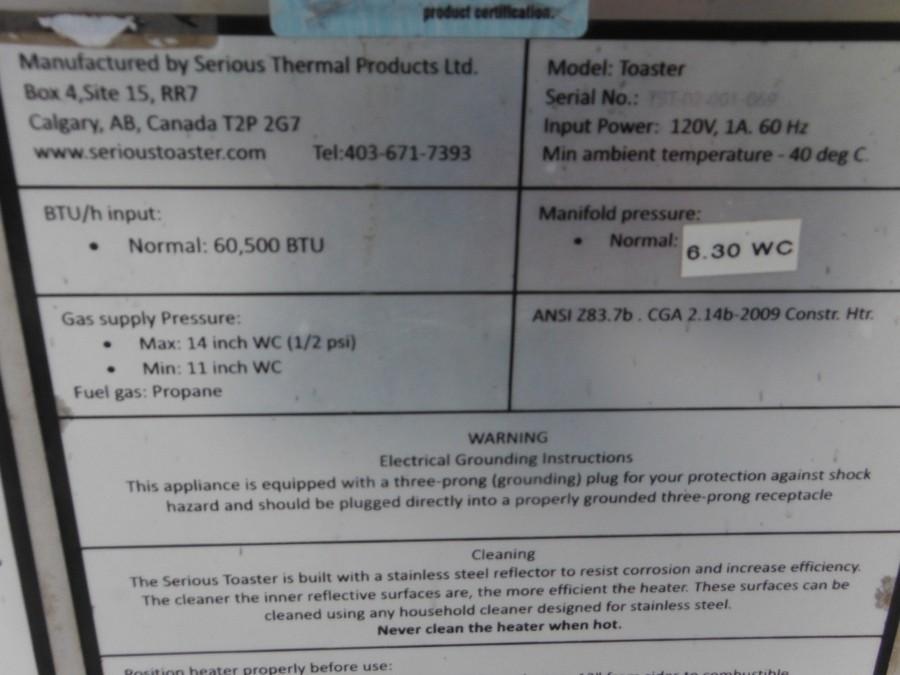 Toaster Ground Thaw Unit 60,500 BTU Control # 7951.