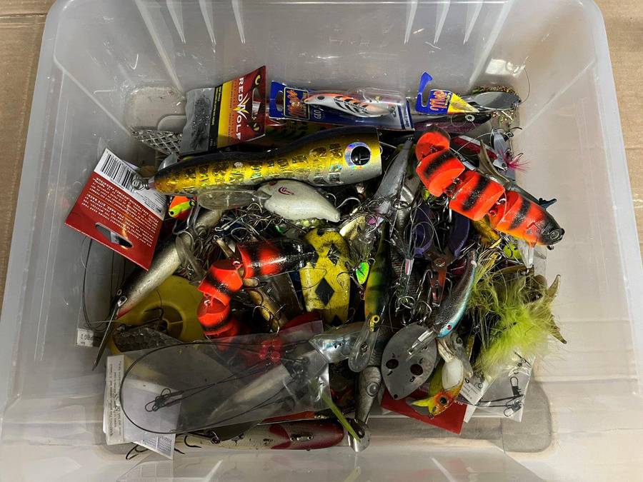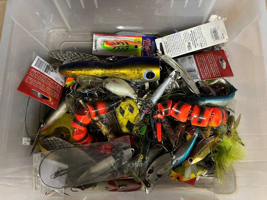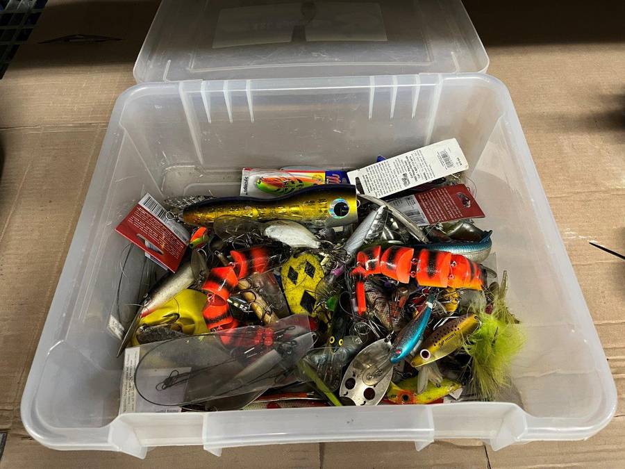 Bin of Assorted Fish Hooks.