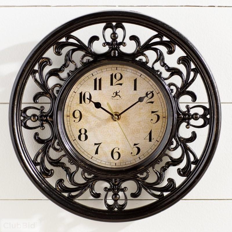 Fleur De Lis Living Bronze 12 Round Plastic Wall Clock (FDLL3366)