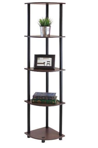 Furinno 99811DB-WG/BK Turn N Tube 5-Tier Corner Display Rack Multipurpose Shelving Unit, Dark Brown Grain/Black