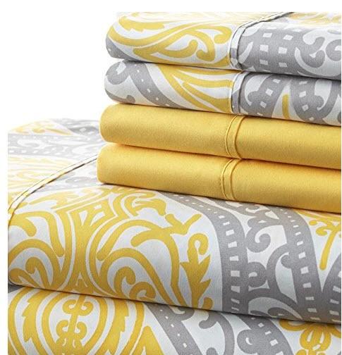 Spirit Linen Hotel 5Th Ave Prestige Home Collection 6 Piece Sheet Set, Full, Grey Yellow Medallion