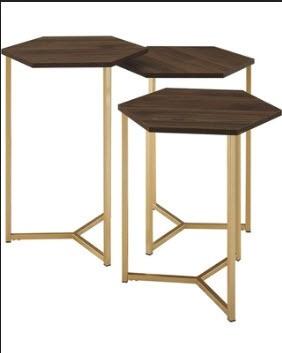 Byblos Hex 3 Piece Nesting Table Walnut/Gold