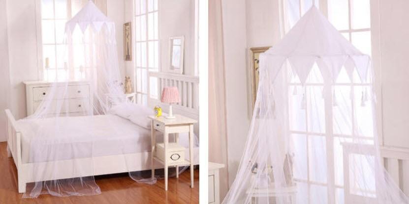 Casablanca Harlequin Collapsible Hoop Sheer Bed Canopy, White