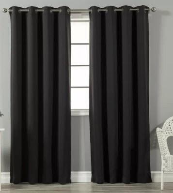 Solid 2 Blackout Thermal Grommet Curtain Panels, Black 52x63"
