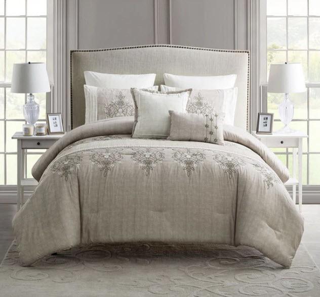 VCNY Grace Embroidered Comforter Set - Tan - Queen