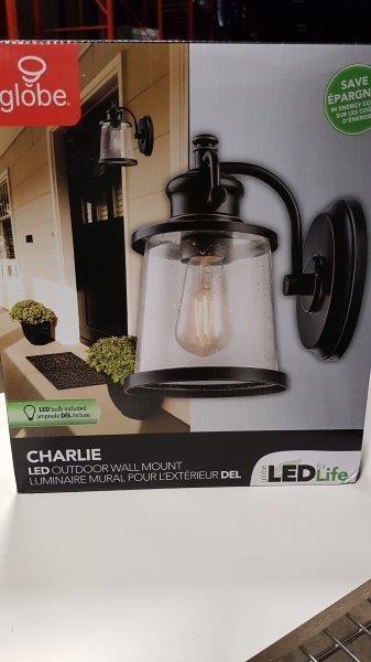 Globe Electric Charlie LED Outdoor Wall Sconce, Oil Rubbed Bronze Finish, Clear Seeded Glass Shade, LED Bulb Included