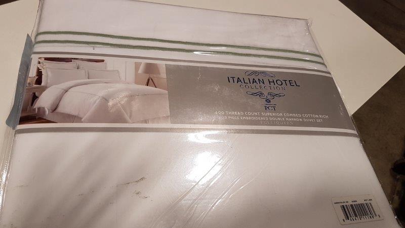 Italian Hotel Collection 600 Thread Count 3 Piece Embroidered Double Marrow Duvet Set - Full/Queen / Black