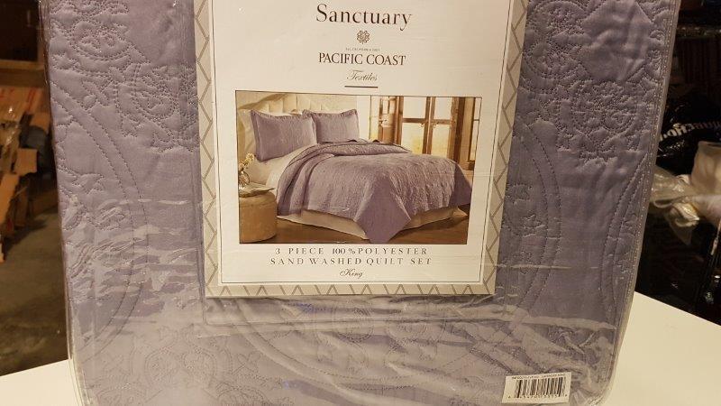 Sanctuary 3 Piece Sand Washed Quilt Set - King / Lavender (3MFSQLTH-LVR-KG)
