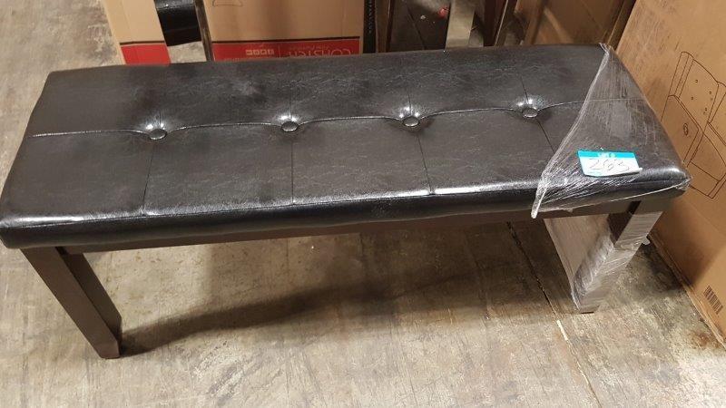 Bench w Black Leather Seat & Brown Oak Legs - 16.5"x47"