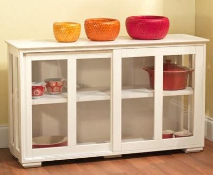 Sliding Tempered Glass Doors Stackable Storage Cabinet - White