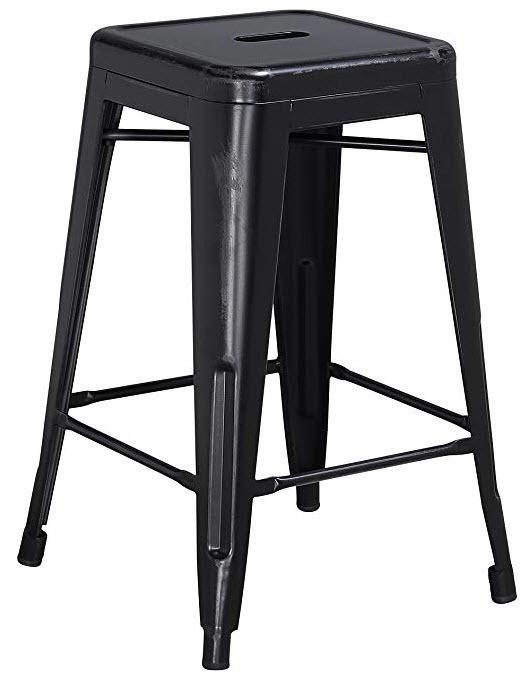 Flash Furniture 24'' High Backless Distressed Black Metal Indoor-Outdoor Counter Height Stool - 4 pcs